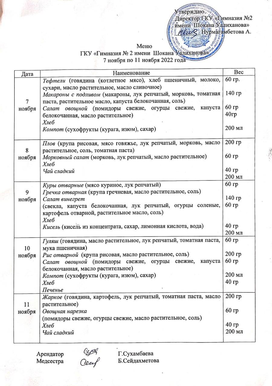 Меню за период с 07.11.2022 по 11.11.2022 » Ш. Уалиханов атындағы №2 гимназия