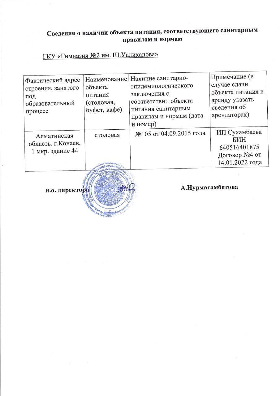 13 июнь 2022 Санитариялық нормалар мен қағидаларға сәйкес келетін тамақтану объектісінің болуы туралы мәліметтер