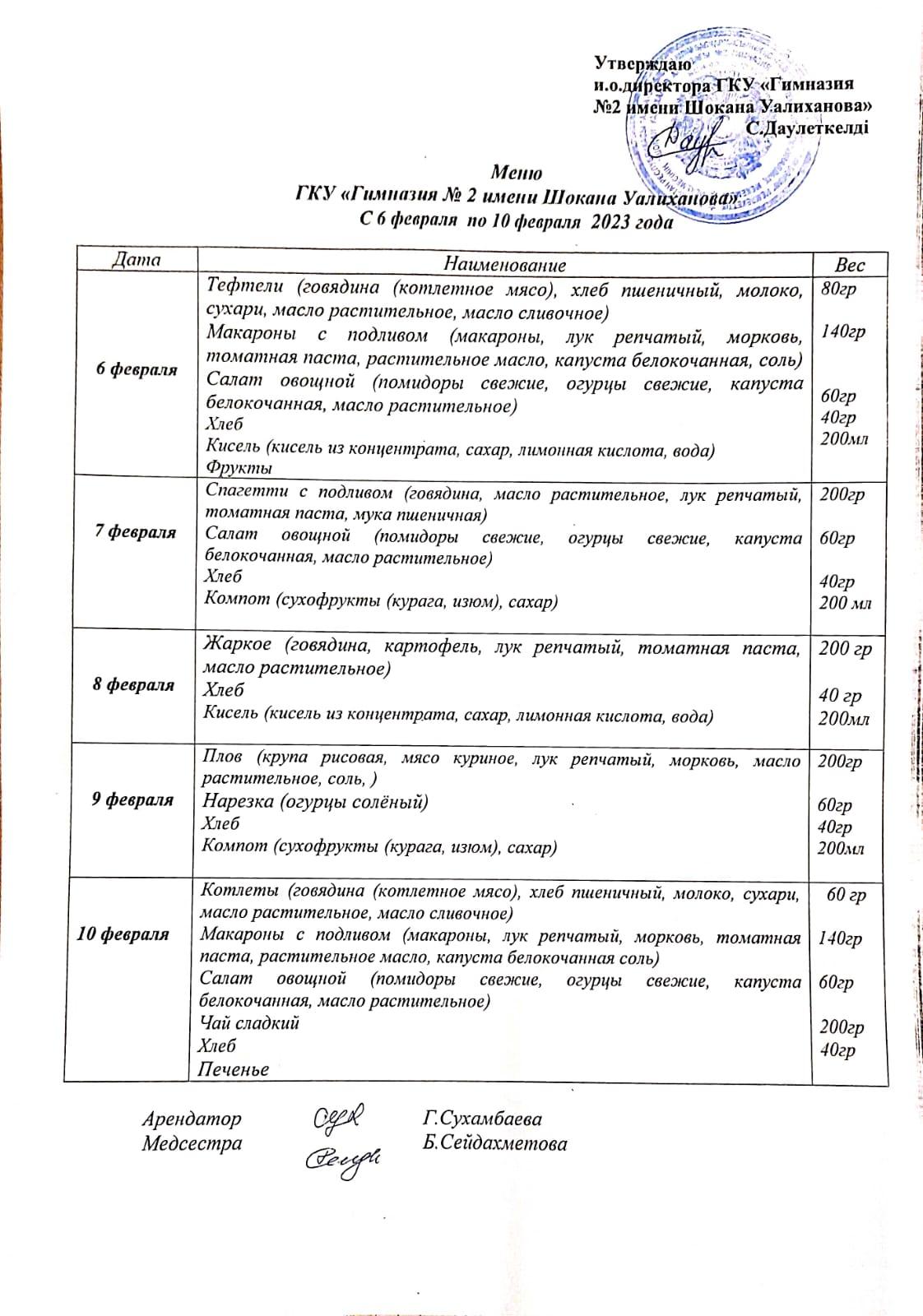 30 қаңтардан 03 ақпанға дейін ас мәзірі. » Ш. Уалиханов атындағы №2 гимназия