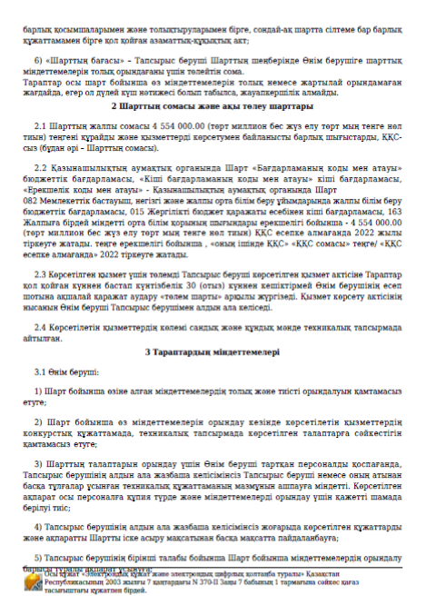 Ыстық тамақты ұйымдастыру туралы шарт » Ш. Уалиханов атындағы №2 гимназия